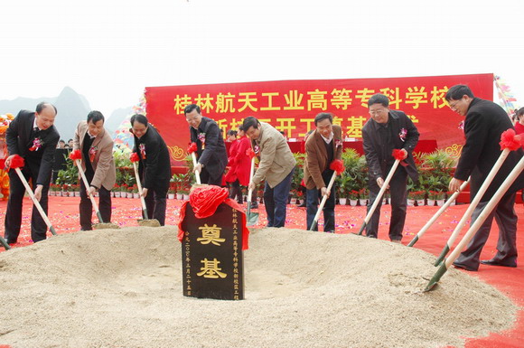 桂林市副市长周卫在奠基仪式上对我校新校区开工表示热烈祝贺!他说,国务院已确定桂林为国家旅游综合改革试验区,桂林现正处于经济社会科学发展的关键阶段,面临着提升产业结构、转变发展方式的重大机遇。加快包括桂林航专在内的桂林高校的发展,是桂林市大力实施科教兴市和人才强市战略的重要举措。希望桂林航专以新校区开工建设为新起点,以更高的追求、更快的步伐,推进学校内涵发展、特色发展、和谐发展,实现学校科学发展、跨越发展,为桂林经济社会发展做出更大的贡献,为国家繁荣和社会进步培养更多高级应用型人才。